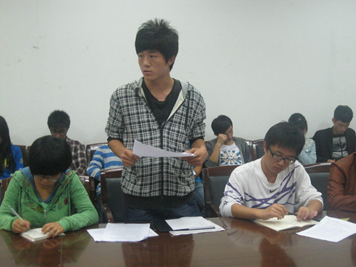 接下来,各部门部长就其前段工作的内容作了总结性的发言。其中,新闻网络部部长梁倩兰提出的国庆火车站志愿者服务期间进行现场志愿手语表演的想法博得了主席团和其他各部门部长们的一致好评。各个部门部长积极献策,会展服务部的“秀家乡照片展”志愿活动、支农支教部的“留学生支教”志愿活动、青春健康部的“西安城墙赛跑活动”……各种大胆而新奇的想法不断地被提出,将会议的气氛不断推向高潮。会议最后,为了让总队能更好的运转,更好的做好每项志愿活动,副秘书长张松针对总队目前的现状提出了几点要求:一是在干事培训会上,要根据各干事的性格特点进行管理;二是各参会人员不得无故迟到、旷会;三是总队各部门要加强沟通与合作。