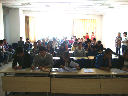 9月27日中午12:30,由我校青年志愿者服务总队绿色环保项目管理服务部举办的“让渭河变清环保志愿活动”志愿者面试活动在朝晖大学生活动中心二楼培训室拉开了序幕。绿环部部长郑思远同学主持了活动,尹晓飞、谭玉锹、刘炜、赵珊等部分总队部长担任了面试官。77位不同年级的同学参加了本次面试活动。