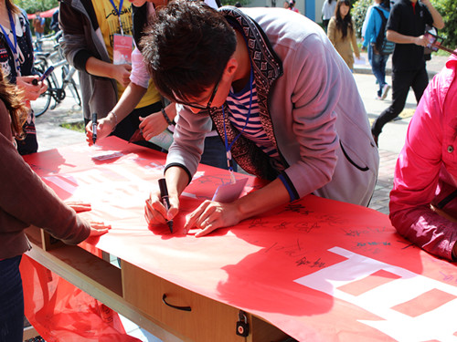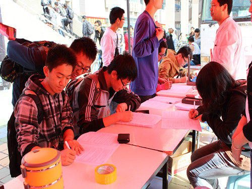 活动现场随处可以见到总队志愿者和献血志愿者的忙碌身影。树蕙园广场东侧有可以志愿签名的横幅,横幅前站满了前来志愿献血的同学们。这些志愿者中很多都是大一的新生。一位叫刘博的大一同学称,献血一直是心内所想,终于可以圆了自己当一名志愿者的梦想。此外,还有不愿透露姓名的大二学生,称其已经坚持献血很长时间,并表示收获了做一名志愿者的快乐。
