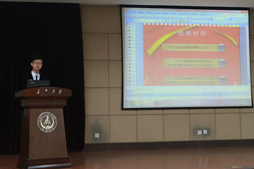 随后,办公室副主任李洲讲解了校会日常事务培训。他针对办公室的值班工作进行培训,其中提到了值班应注意的一些细节问题。他特别说明值班人员要领会十二字礼貌用语“您好、请、谢谢、请问、对不起、再见”,接听“热线”电话要热情周到。他还强调了学生会档案管理、学生会场地申请流程、学生会条幅使用申请流程、学生会工作证使用流程、学生会印章使用流程、学生会财务管理等日常流程。