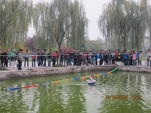 2012年10月28日,由我院科协主办的第五届动力船模大赛初赛在修远湖顺利进行。参与此次大赛的有我院科协全体工作人员,各队参赛人员以及160艘左右整装待发的船模。此次初赛场面十分壮观,现场气氛火爆。