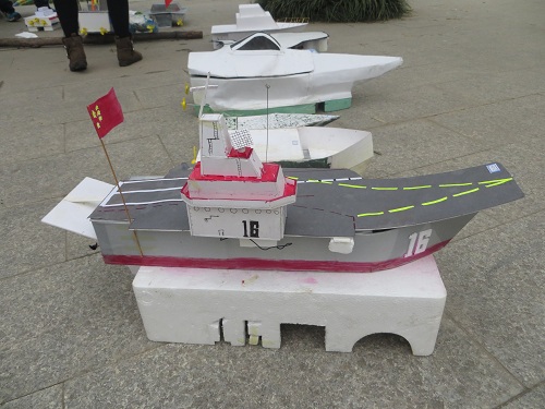 上午6点30分左右,首先由我院科协工作人员将提前连接好的赛道铺在了修远湖上。准备工作结束后,接下来进行的是各参赛队人员的签到以及赛事安排。9点钟比赛正式开始,上次的第一艘船便有技压群芳之势,以一身亮丽的梅红色金属光泽的着装亮相,它的速度也相当可观。但好戏后面看,第二艘船模虽说包装欠佳但速度是只快不慢的••••••更有船模以近20秒的超短时间跑完了全程。同时在比赛的过程中也有失败的船模,它们在下水后只在水中旋转而不前进。