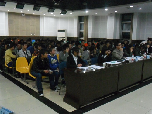 晚7:00,比赛正式开始。复赛共有五个环节,分别是:风采展示、旗开得胜、激情碰撞、如履薄冰和壮志凌云。风采展示环节,各参赛队用精美的PPT或DV简短地展示了团队的风采。接着进行的旗开得胜、激情碰撞和如履薄冰环节,充分考查了各参赛队伍的创业知识储备以及队员们的分析、反应能力。现场竞争十分激烈,比分你追我赶,难分伯仲。