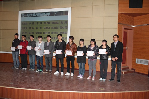 大会在12:30正式开始。会议第一项,全体与会人员观看省图志愿者宣传视频。志愿者们从生动丰富的视频中感悟了志愿者风采,了解了陕西省图书馆志愿者活动内容,也从中被激发了颇高的志愿者热情。之后,工程机械学院青年志愿者服务队主席段伶伶作为承办方代表人对第一期省图志愿者活动进行总结。她从第一期志愿者的经历和感悟总结出一系列值得学习和体会的工作经验。大会第三项,工程机械学院学办朱先前老师宣读第一期省图优秀志愿者名单并为优秀志愿者颁奖。紧接着,优秀志愿者代表朱岗同学上台带领全体志愿者宣誓,表达对志愿者的热爱和强烈的工作决心。此后,大会特别嘉宾陕西省图书馆阅读推广部主任王亚莉老师就图书馆整体情况、志愿者工作状态以及对日后工作的希望进行了讲话,将社会对志愿者们的感谢和寄托借此次大会传达给了所有志愿者。最后,长安大学校团委李瑾老师就我校志愿者培养、志愿活动创办和对我校志愿者工作的寄托发表了讲话。志愿者们从李瑾老师的讲话中了解到了我校志愿者的整体风貌,对志愿者的未来充满了希望。动员大会结束后,老师和主席离场。工程机械学院青年志愿者服务队会展培训部两名培训人员对与会所有志愿者进行省图志愿者素质和能力培训,志愿者们都受益匪浅。本次大会在13:30全部顺利结束。