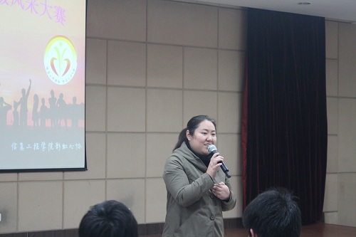 首先,参赛选手用多媒体展现了各自班级的良好风采和特色,从而让观众们感受到了参赛班级温馨团结的氛围和积极向上的精神。之后,各班的同学又表演了“班级好声音”,为观众们献上了一场听觉盛宴。最后,院党委副书记陈晏老师对同学们的表演做出了幽默而又富有建议性的点评,并祝愿经过此次比赛后,班级能够更加团结,同时,她也希望同学们以后能够多多参加此类比赛,这既增强了班级荣誉感,又锻炼了同学们的团结合作能力。