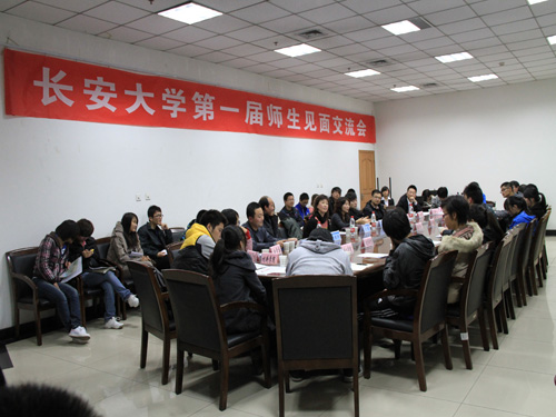 2012年11月13日19晚7:00,由我校学生学生会致学工作委员会(以下简称致学委)主办的长安大学第一届“师生见面交流会”在朝晖大学生活动中心一楼会议室顺利举行。出席本次会议的有老师代表闵军,高莉,董建涛,潘红霞及长安大学学生会主席李致中,长安大学各院系学生代表也参加了会议,会议由潘恒业同学主持。