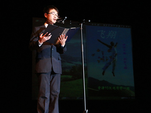 晚7:00,比赛正式开始,进入决赛的17支队伍依次进行了作品解说与展示。首先进行的是电子团刊类作品的展示。动人的讲解、精致的画面,将各团支部的风采展现在观众面前。支农志愿者协会带来的开场节目《切格瓦拉》合唱,铿锵有力,浑厚深情,其作品《支农志愿者协会风采》中支农下乡、支教等志愿者活动真实感人,打动人心。随后,班级主页的5件作品进行了展示。各具特色的网页设计,充分表现了各个班级的不同风格。信息学院计算机四班团支部作品《心晰网》在网页布局、模块设计上新颖并富有创意,获得了观众的肯定。接着,手机视频类的5件作品进行了最终对决。手机视频类作品风格迥异、内容丰富多彩。16号作品《读秒》,用唯美的画面、触人心弦的语言讲述了学生爱情的酸涩与甜美。13号作品《青春style》则以幽默的主旋律、欢快的骑马舞、搞笑的场景、雷人的对白引得现场观众捧腹大笑。