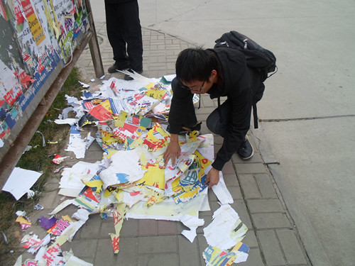 由于早晨下了雨,整天气温都很低。然而,本着为同学们服务的理念,志愿者们依然不畏寒冷地站在了校园保洁的第一线。下午2:00,所有参与活动的干事都在东区和西区食堂门口集合完毕,随时准备开始志愿活动。随着任务的分配完毕,所有人都热火朝天的干了起来。东区从7号楼开始到16号楼,西区从1号楼到6号楼,还包括明远大道和修远大道等道路,志愿者们开始清理地上的废纸和宣传栏上的小广告。一拨志愿者做得累了,另一拨人再继续做。大家尽可能地多做一点,都希望为美化渭水校园付出自己的一份力。