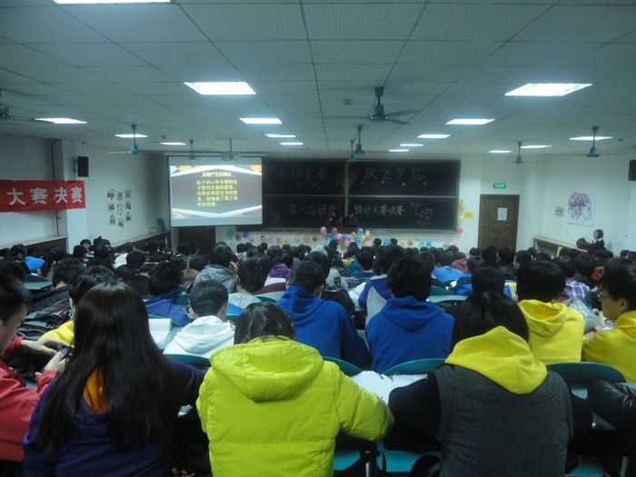 易磊老师致辞。易老师首先对彩虹驿站为举办本次比赛的辛苦付出表示了肯定。接着,他预祝进入决赛的九个优胜班级能赛出水平赛出风采。接下来比赛正式开始,各个班级同学对本班班徽进行展示。各个班级的代表各显神通,多形式,多角度将自己的班级,班徽展示在大家面前。T台秀、唱班歌、制作视频短片、表演相声……各具特色班徽设计,极具创新的表现形式,一方面展示了同学们为班徽设计付出的汗水,另一方面将同学们团结友爱,积极向上的精神风貌完美的展示了出来。短短几分钟的讲解,在带给同学们欢笑的同时,也给了大家更多的感动,获得了在座嘉宾由衷的赞美。