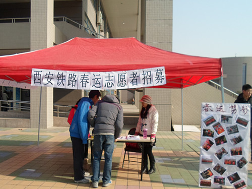 2012年12月24日,长安大学2013年西安火车站春运志愿者招募活动在东西区食堂门口正式拉开帷幕。本次志愿者招募工作由长安大学青年志愿者服务总队承办,将为2013年西安火车站春运志愿服务行动纳入一批优秀的青年志愿者。