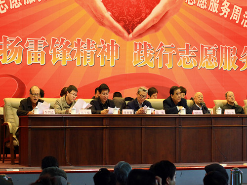 陕西省慈善会副会长孙忠信在仪式上介绍道:“2013年‘3.5’志愿者服务周活动以“弘扬雷锋精神,践行志愿服务”为主题,从3月3日至9日将有1000余名慈善志愿者深入社区、敬老院、残障幼儿园,为贫困弱势群体、鳏寡孤独老人及残障儿童开展义诊、料理家务、打扫卫生等服务。