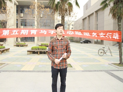 活动开始,“青马”总班班长李致中讲话,他将志愿服务活动分为“校园环保行动”、“光盘行动”、“关爱留守儿童”三个部分,并且强调此次活动是新学期“青马”班第一次活动,大家要积极参与,祈祷先锋模范作用。