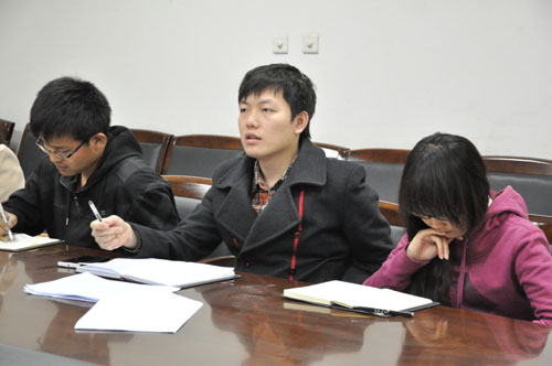 之后,各主席对部长的汇报进行总结,提出了自己的意见和建议,并对这学期的重要工作进行部署。其中,主席李致中进行重要发言。他指出,部长在汇报工作时,不仅应表明要做什么,还要表明该怎么做,在新的学期里,大家要一起完善校会的各种体系,加大各种活动的宣传力度,充分利用网络这个平台进行宣传,各个部门团结互助,锐意进取,用一个个小行动践行全心全意为学生服务的宗旨。他还提出,本学期最重要的工作是渭水之星十周年比赛的举办,这将是一场没有退路的战争,我们必须竭尽全力把它办好。最后,他以别校良好的宣传方式为例,指出学生会在宣传方面的不足,并提出可以改进的地方,及应向他校学习的地方。