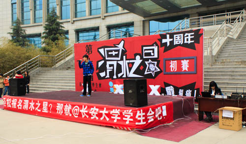 星耀十年,梦想起航。2013年3月16日早,由校团委主办,校学生会承办的长安大学渭水之星风采大赛海选,在逸夫图书馆门前广场正式举行。十年成长,只为点亮此季。梦想之路,共同踏步前行。