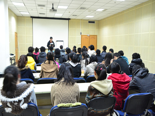 晚7:00,交流培训会在大学生活动中心二楼培训室准时开始。社联公关部部长刘文迪首先为大家做了外联方面的培训。他说,公关对人的交际能力以及语言表达能力均有很高的要求,外联部是所有部门中最能体现实战能力的。接下来,他为在座的各位同学分享了自己的一些经验。他提出“即使跌倒,也要抓起一把沙”的对商原则,即首次合作也许不成功,但也可收集商家信息、积累人脉,并且以朋友的姿态与商家合作,并定期与商家保持联系;其次要找准目标、提前做好功课,注重外联礼仪等。
