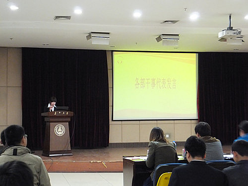 晚7:00,大会正式开始。首先,马文主席上台发言,在主题为“回顾历史,展望未来”的发言中,马文主席回顾了校心协自创立以来的发展历程,展示了校心协在“成长”历程中所创造的成就和辉煌,随后,他总结了上学期校心协的工作,在肯定协会全体成员的工作成果的同时指出了工作所出现的问题与不足,提出了具体的改进要求。在发言的最后,马文主席对协会职责和协会成员职责的深入探讨引发了大家的深思。立足现在,放眼未来,马文主席对全体协会成员提出了更高的要求,表达了对校心协未来的美好祝愿。
