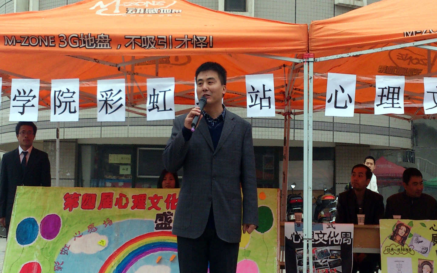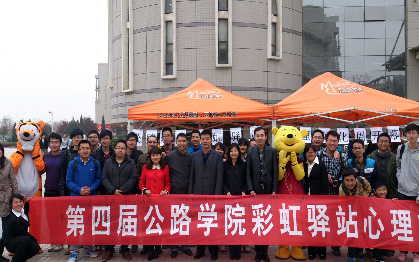2013年3月25日中午12时,公路学院第四届心理文化周开幕式在渭水校区滋兰苑东门口盛大开幕,公路学院党委副书记雷显锋老师,公路学院团委副书记张晔老师,学院彩虹驿站指导老师李杨老师,2010级辅导员许静老师,2011级辅导员石广腾老师,2012级辅导员卢毅老师出席此次心理文化周启动仪式。
