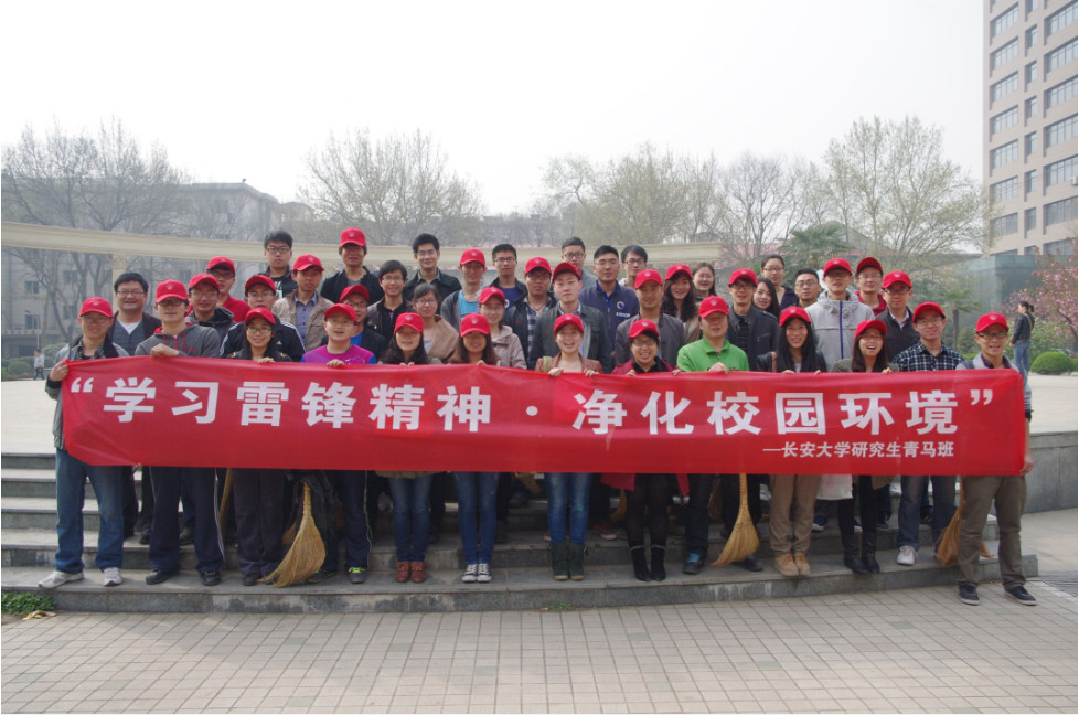 2013年3月23日 上午,长安大学第五期“青马”研究生骨干班(以下简称“研究生青马班”)在本部校区和雁塔校区组织发起了“学习雷锋精神·净化校园环境”大型活动。活动中,广大研究生同学积极参与,热情服务,用自己的实际行动诠释着永恒的雷锋精神。研究生青马班班主任、学工部副部长王卫老师参加了活动启动仪式;启动仪式由研究生青马班班长、校研究生会主席蒋学猛主持。