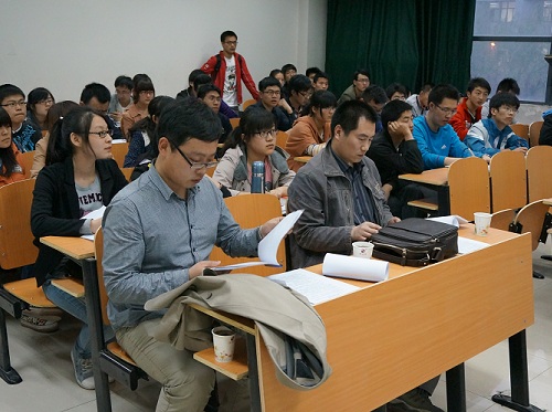 之后,栗老师对比往届省赛参赛文本,详尽地向同学们介绍文本填写经验,重点辅导了如何优化题目、选择作品类别。他指出题目不但要体现先进的科技含量更要吸引人,而选择类别更要避免竞争并且尽可能发展自己最大优势。他指出:“申报书是整个作品最凝练的部分,要以科学的语言阐述技术的重点。”另外,在专利申请和论文发表方面,他更是极尽所能为同学们解惑。针对哲学社会调查报告类别,他强调了调查问卷的表现形式的问题、解决方案具体化的问题、政府反馈意见的问题等。他指出:“我们应该了解专家真正关注什么,做到有的放矢。”