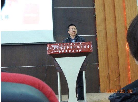 2013年3月30日上午9时30分,西安建筑科技大学第十届大学生社团文化节开幕式暨社团发展论坛拉开了帷幕。到场的有西安建筑科技大学各校区学生会主席团,包括我校在内的各兄弟学校社联及社团骨干。