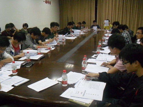 此次评选活动意在督促和鼓励各院系科协认真工作,加强各院系科协之间的交流与合作。活动一开始,由主持人—校科协学院部部长—李志伟宣读了评审要求,要求各评审人员在评审过程中要做到认真负责、公平公正。随后,各评审人员根据各院系科协上交的评测申报材料,对包括电控科协、理学院科协、政治科协、公路科协、地测科协、建筑科协、资源科协、经管科协、汽车科协、信息科协、机械科协、环工科协、材料科协、建工科协共14个院科协单位进行了认真细致的评定。