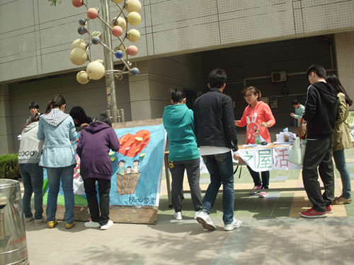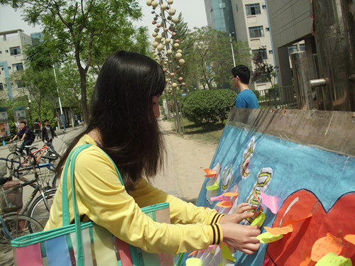 2013年4月14号中午,长安大学彩虹心理协会(以下简称“校心协”)“心之屋”系列活动在东西区食堂门口顺利开展。此次“心之屋”系列活动由校心协宣传部主办。