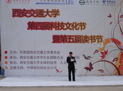 早上10:00第四届科技文化节暨第五届读书节开幕式以一首歌曲《简爱》在西安交通大学召开。参加此次活动的有西安交通大学、长安大学、西北工业大学、西安电子科技大学等西安8大高校的科技协会。在开幕式中,我校科协代表(写下名字!)对我校科协具体情况进行详细的介绍,让在场各高校对我校科技组织有了一定的了解,讲说过后,台下阵阵掌声。下午,校科协参与人员在西安交通大学工作人员的带领下参观了他们学校的“工程坊”,“工程坊”是让每个有创新、有梦想的同学在那里通过自己实验以及导师讲解来实现自己的想法,在那里,每个同学都收获颇丰。随后,校科协人员又集体观看了西安交通大学的航空模型实地飞行演练活动,航模活动的最大魅力在于能向充满求知欲和好奇心较强的青少年提供一个可以学习和实践的机会。通过制作和操作模型使他们既能尝试到飞机在天空中飞行的乐趣,又能学到一些航空科技知识,让同学们养成动手动脑的良好习惯。