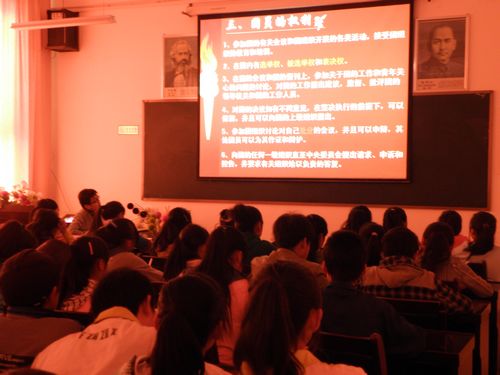 本次团课紧密围绕当前共青团工作的重点内容,系统的介绍共青团的历史、共青团的基础知识、团员的权利与义务、共青团组织原则等方面内容。重点阐述了“中国梦”,让全体入团积极分子了解了“中国梦”的内涵及其青年人特别是团员青年应担负的“青年梦”是什么。