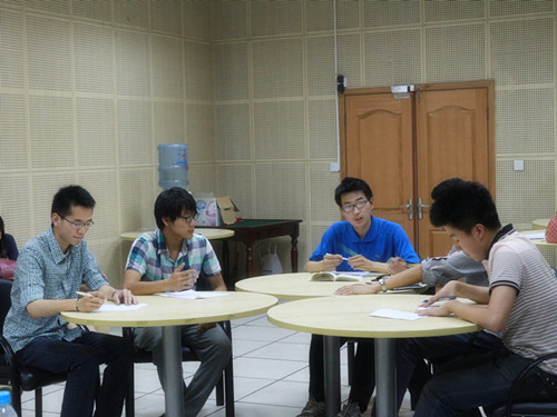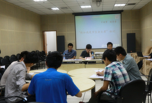 5月16日晚19:00,由长安大学学生会主办的“中国梦·致青春”暨“假如我是学生会主席”无领导小组讨论面试在朝晖大学生活动中心一楼视听室水利召开。出席活动的评委有现校学生会主席李致中,副主席祁高航、赵宁,上届学生会主席孙浩天以及四名观察员。