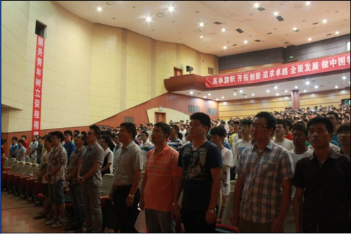 大会在高昂的国歌声中开始,张晔老师首先宣读了学院团委的表彰决定。充分肯定了在2012年暑期社会实践中的集体和个人所付出的努力,对他们发扬青春奋斗的精神表示高度表扬。同时他还鼓励在座的2012级全体同学积极踊跃参加社会实践活动,在实践中去放飞青春梦想,书写人生华章。