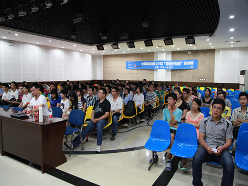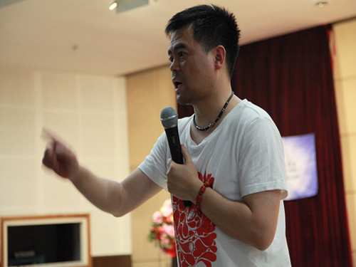 讲座上,记者邓飞与志愿者们亲切交流,分享了他的个人经历和公益理念。他为志愿者们讲述了“微博打拐”、“免费午餐”、“让候鸟飞”、“大病医保”等公益活动的发起原因。讲述中,他提到了传统媒体的弊端和新兴媒体的传播力量。他还就“免费午餐”一事指出,由揭露丑闻到用行动去改变中国是一种为政府提供解决方案的共赢模式。他呼吁大家,只要心中有爱,有梦想,每个人都可以行动起来。