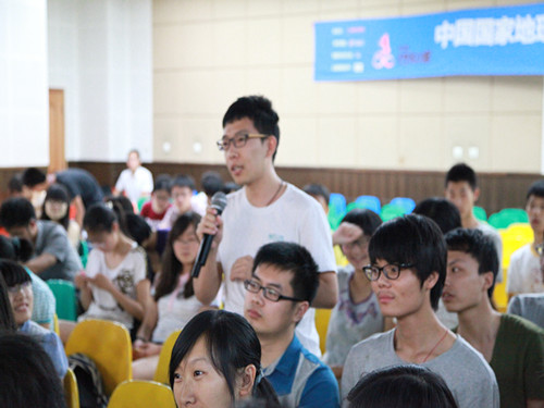 讲座开始前,记者邓飞的公益团队成员为志愿者们介绍了“校园行知客”挑战赛的历程和活动意义。随后,又以“东方白鹳中毒事件”引出了“让候鸟飞”活动。在活动介绍结束之后,他播放了记者邓飞的相关视频,现场响起了热烈的掌声。
