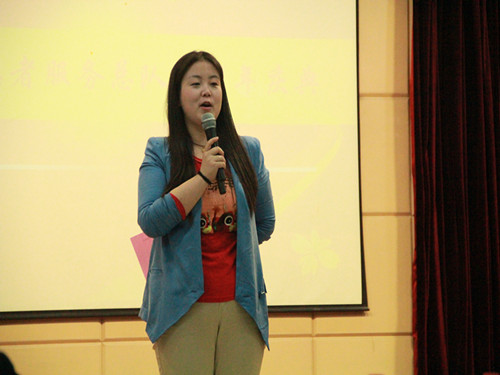最后,校团委李瑾老师发言。她提出了对总队组织架构建设的思考,并表达了对总队未来的美好期望。她与大家分享了第一次在北客站参与志愿服务的经历。她指出,做志愿服务应该更注重活动创意的提出,与各公益社团和学院志愿团队合作,整合志愿服务资源,在全校范围内有序地开展志愿活动。