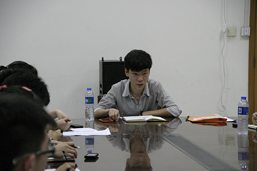 会议初始,从主席团开始向大家做了简短的自我介绍。接下来大艺团新任团长曲相儒总结了艺术团在过去一年里的突出工作,他指出了艺术团的纪律问题和考勤率的问题,强调了新任部长以及副部们要以身作则,减少批评,同时要对艺术团新成立的视频剪辑部的发展建设给予支持。副团们则对于自己分管部门未来的工作和发展提出了新的希望和要求。