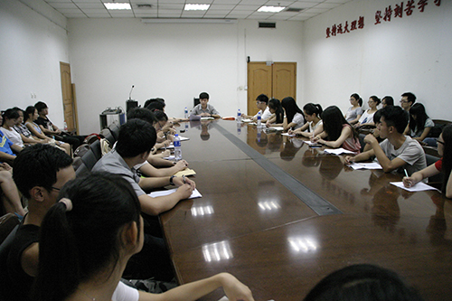 2013年7月9日晚19点,长安大学大学生艺术团新任干部会议在朝晖大学生活动中心一楼会议室顺利召开。参加本次会议的有大学生艺术团新任团长曲相儒,常务副团长刘奕含,副团长杨美凤、刘鹏飞、陈露、潘雅倩、袁菲、吴俊玮以及各部门新任部长和副部。