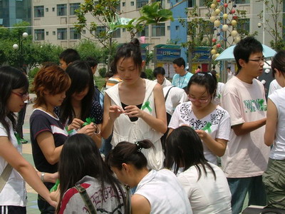 5月20日,我院广告系三个年级的同学联合开展了面向我校全体师生的悼念四川地震遇难同胞“绿丝带”行动。