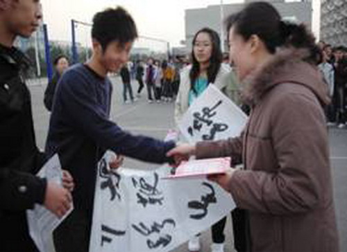 2008年12月14日下午5:30,在渭水校区东区篮球场举行了本次书画文学作品大赛的颁奖仪式。院党委副书记郗波老师,学工办主任武永江老师,团委书记刘会涛老师以及学工办杨利峰、藏萌老师为获奖选手颁发了荣誉证书并与获奖选手合影留念。