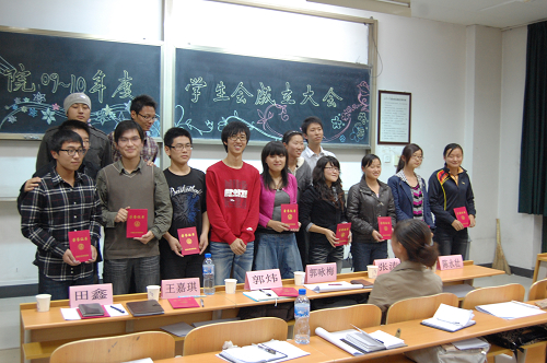新一届学生会成立伊始,汽车学院学生会前辈们与大家分享经验的同时预祝本届学生会能再接再厉创造新的辉煌。新学生会成员决心一定不负众望,在以后的工作中尽心尽职,为汽车学院的美好明天贡献自己的一份力量。在一片掌声中,郭咏梅老师宣读了汽车学院09-10年度学生会主席团及部长名单并颁发聘书。