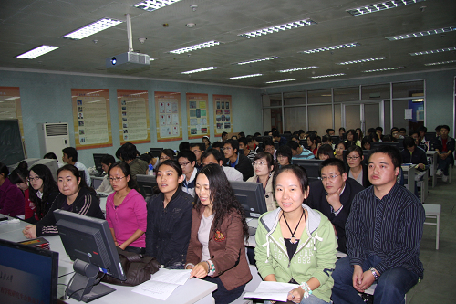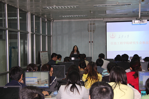 2009年11月23日下午,信息工程学院在信息发布室召开研究生会换届大会。院党委副书记吴晋云、学生办公室主任陈晏、院团委副书记丁芝娟、研究生兼职辅导员刘秋平、新一届研究生会成员、2008级研究生会部分干部和班级干部和2009级全体研究生参加了会议。会议由研究生兼职辅导员柴艳娜主持。