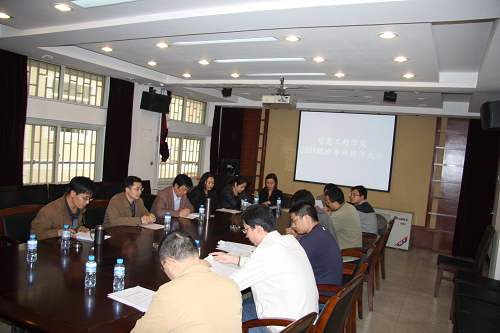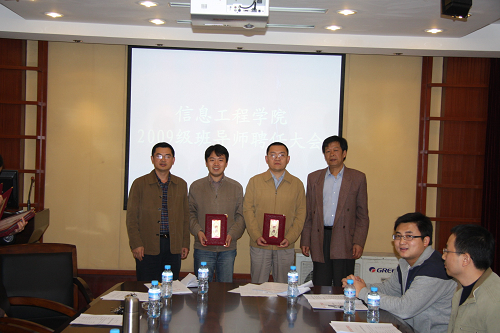 首先,院党委副书记吴晋云代表学院宣读了《信息工程学院关于聘任班导师的通知》。接着,院党委书记车胜创、院长赵祥模亲自为2009级全体班导师颁发了聘书并合影留念。党委书记车胜创、院长赵祥模、副院长孙朝云随后也分别发表讲话,一致对受聘担任我院2009级各班班导师的老师们表示衷心感谢,同时对他们提出了一些具体要求。