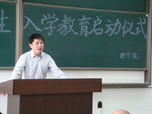 在启动仪式上,胡书记首先代表理学院对新同学表示欢迎,就学校、学院的历史和发展现状向同学们做了详细的介绍,并结合目前新生身上存在的突出问题为同学们指明了方向,对新同学提出了严格的要求和殷切的期望。接着,龚伟副院长就同学们如何适应新环境,如何对待大学的学习做了详细的阐释,并鼓励同学们要珍惜青春,珍惜大学的美好时光。