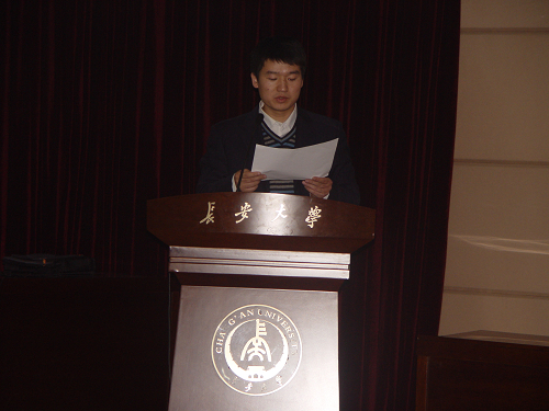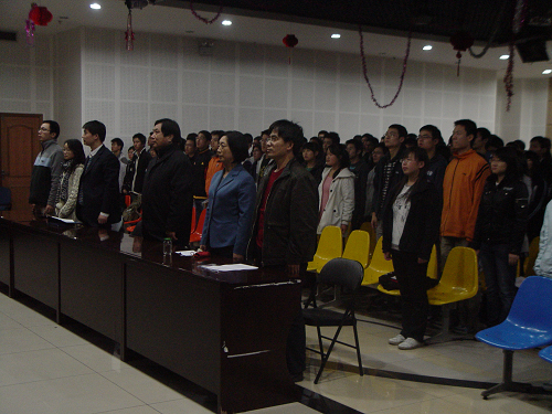 2009年11月3日晚6点半,信息学院与电控学院二级党校第七期学生入党积极分子培训班开学典礼在大学生活动中心三楼多功能厅隆重举行。长安大学党校常务副校长宋美红老师,电控学院党委副书记刘志超老师,信息学院党委副书记贺炳彦老师,电控学院学办主任赵丹老师、电控学院团委副书记高婷老师、电控学院07级辅导员李英举老师出席了开学典礼。开学典礼由信息学院09级辅导员李文敏老师主持。