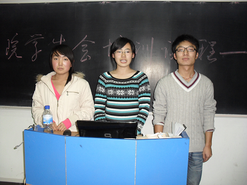 培训在同学们热烈的掌声中准时开始,王嘉琪同学用其激昂的声调,将团队协作精神的重要性进行了深刻的阐述和分析,更把自己的沟通心得毫无保留的与干事们分享。