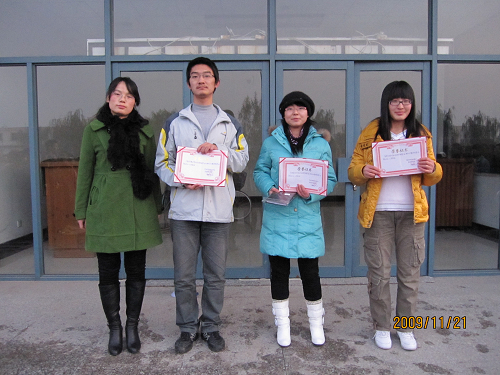 在我校心理知识竞赛即将到来之际,为了更好地促进材料学院心理健康知识的传播,同时表彰在材料学院心理知识竞赛中表现突出的学生,材料学院于11月22日下午在图书馆背面广场举行了心理知识竞赛颁奖仪式。本次颁奖有幸邀请到了材料学院团委书记 何红娟 老师,团委副书记 杨树 老师和09级辅导员 林祖梅老师、吕志胜老师。仪式由材料学院彩虹驿站负责人杨龙海同学主持。