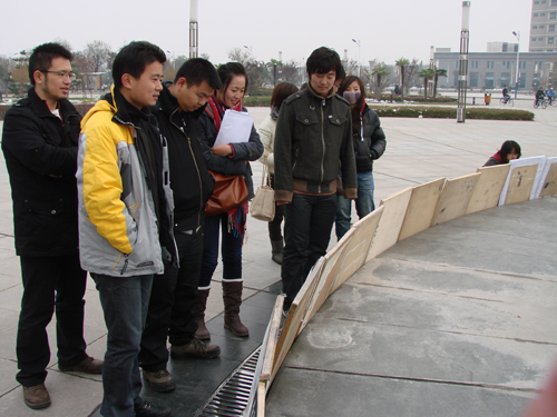 为营造建筑学院良好的科技学术氛围,建筑学院团委学生会组织了“学术周”活动,并于11月19日中午开始在图书馆前广场开展了为期三天的建筑学院优秀学生作品展活动。 院团委书记刘鹏老师、辅导员袁继鑫、崔瑞玲、薛振老师在学生会主席团的陪同下参观了画展,并对这次画展给予积极评价。