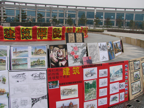 此次画展展出了07至09级建筑学、城市规划、艺术设计专业同学优秀作品340余件。作品风格迥异,颇具特色。主要有铅笔素描、水彩风景、水粉静物、马克笔表现等,内容丰富。形式直观地向全校展示建筑学院各专业的教学成果。