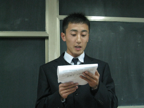 活动一开始,程宝虔老师对比赛规则做了简单介绍,其后八位参赛选手依次上场进行演讲。他们紧扣“党旗红 先锋颂”的主题,结合党课知识的学习经验,畅谈对党的理解和认识,抒发对党的崇敬与热爱。选手们提到的人物更是颇具代表性:毛泽东、焦裕禄、钱学森等等,无一不是曾为党、为人民做出过巨大贡献的党员先锋,还有的选手引用学校中真实的人物事例,更为演讲比赛增添了一份亲切感。其中,来自09级25040901班的选手高慧国在演讲时语调抑扬顿挫,感情真实充沛,赢得了全场同学的一致好评。