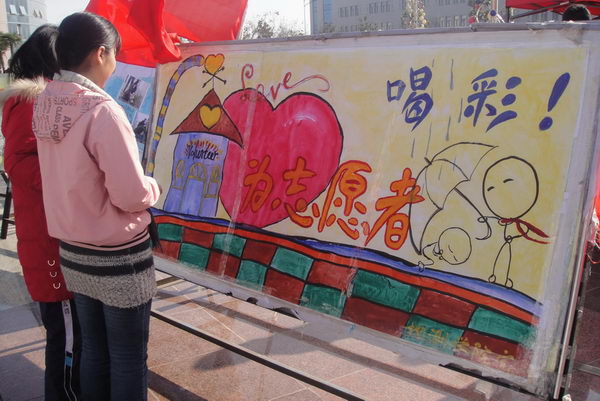 我校于12月5日上午10:20在树惠园前开展了一次大规模的各学院志愿者招募活动。此活动由校团委主办,青年志愿者服务总队、各院志愿者服务分队承办,我院也设置了志愿者招募工作点。