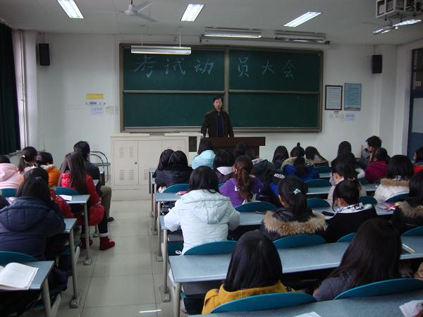 为进一步加强学风考风建设,严肃考纪,营造良好的考试环境,创建优良校风,切实做好英语四、六级考试及本学期期末考试工作,12月17日下午,外语学院在渭水校区召开了主题为“诚信考试光荣,违纪作弊可耻”的考风考纪教育动员大会。院党委副书记路志军出席大会并讲话,各年级辅导员及学院渭水校区全体同学参加了会议。会议由院团委书记石松老师主持。