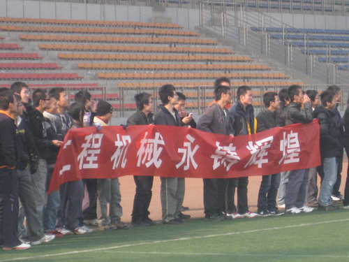 2009年12月21日中午,“电控杯”足球赛季军争夺赛在我院与环工学院之间展开,经过激烈的对抗角逐,我院最终以8:7的成绩取得战胜对手,夺得季军。工程机械学院团委书记朱武威老师,07级辅导员程义老师,09级辅导员杨鹏老师均到场为我院代表队助威。